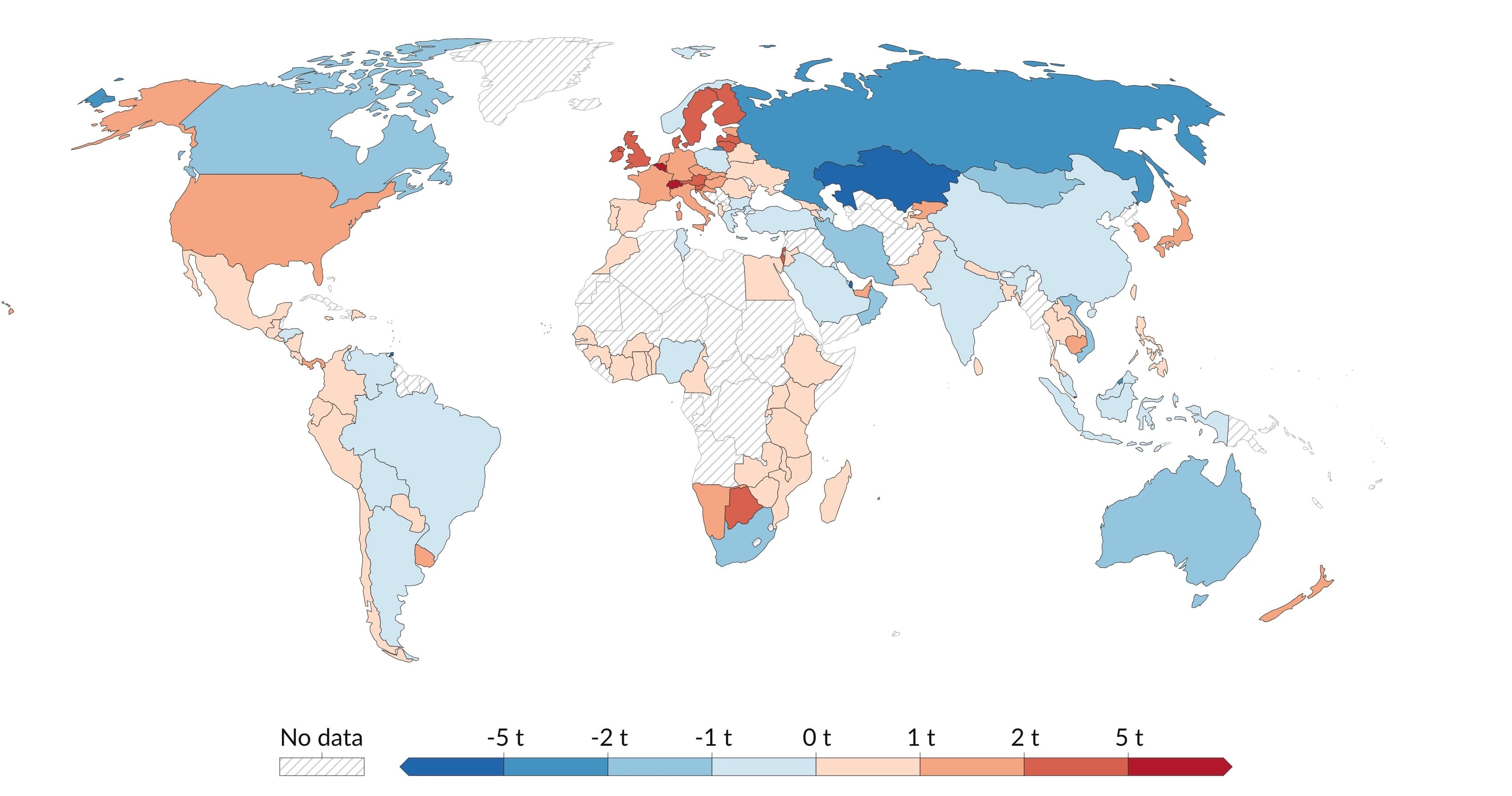 6 La Suisse figure parmi les pays affichant les émissions importées les plus élevées au monde. La carte montre de manière frappante la comparaison entre les pays.Our World in Data, Imported or exported CO₂ emissions per capita; https://ourworldindata.org/grapher/imported-or-exported-co-emissions-per-capita (consulté le 5.6.2025).